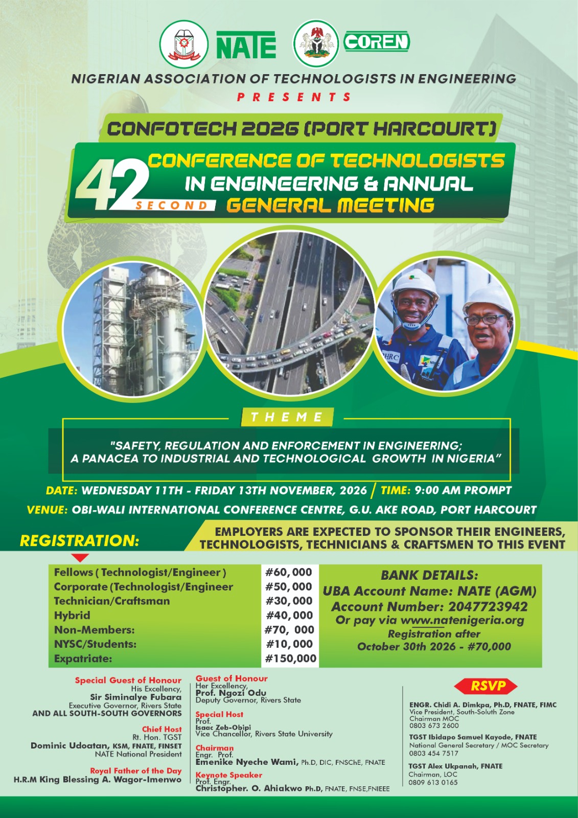 2026 CONFOTECH/AGM shall be held in Port Harcourt between Wednesday 11th and Friday 13th November, 2026 at Obi Wali International Conference Center.
